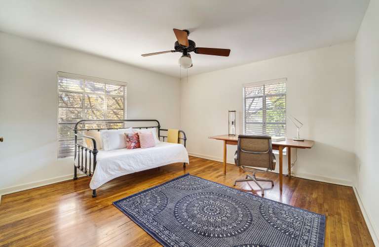 North Central - 1940s 2/1 upstairs unit. This duplex features original wood floors, and a ceramic tile bathroom. It receives excellent natural light and is surrounded by an expansive yard covered in mature trees and greenery. Complimented by a nicely sized front balcony. Equipped with central air heat, communal washer and dryer provided.