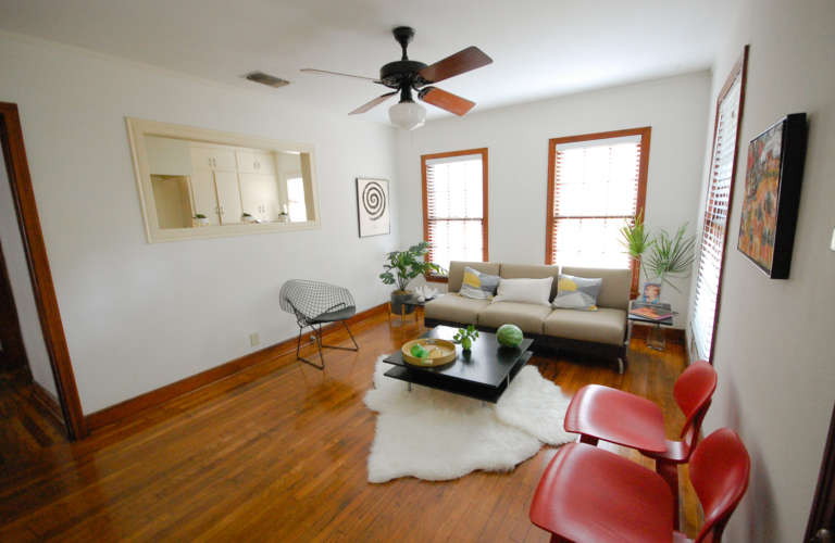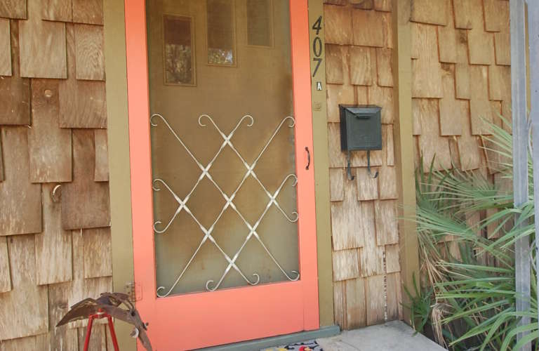 Travis Heights 1930's duplex. Featuring original hardwoods, woodwork, tiled kitchen and bath, and period details throughout. Front porch and side patio, with nice green space in the front and back of the house. Garage space provided with washer/dryer connections inside.